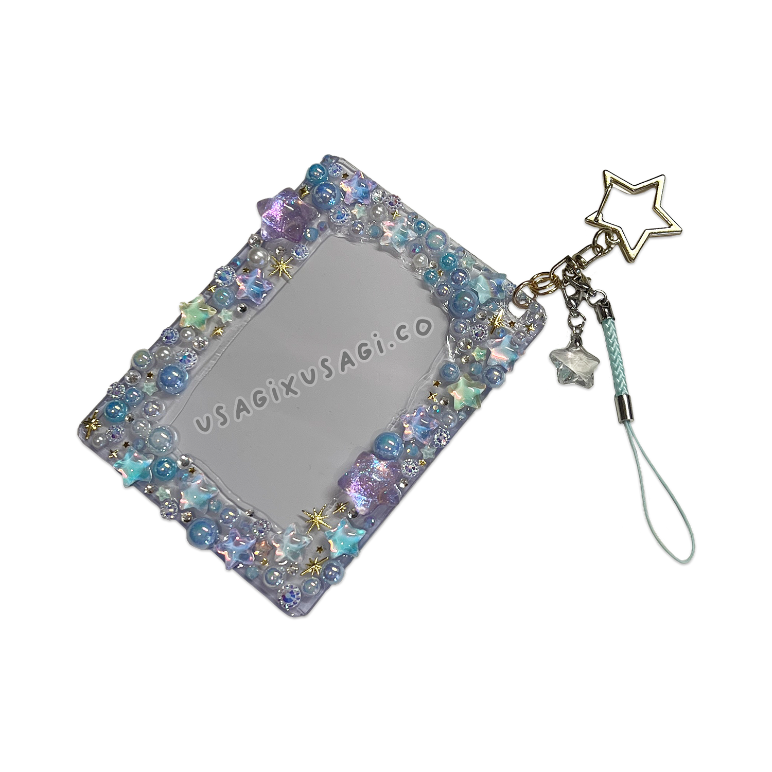 - ⭐ Decorated with blue star cabochons, gold celestial accents & pearl-like charms