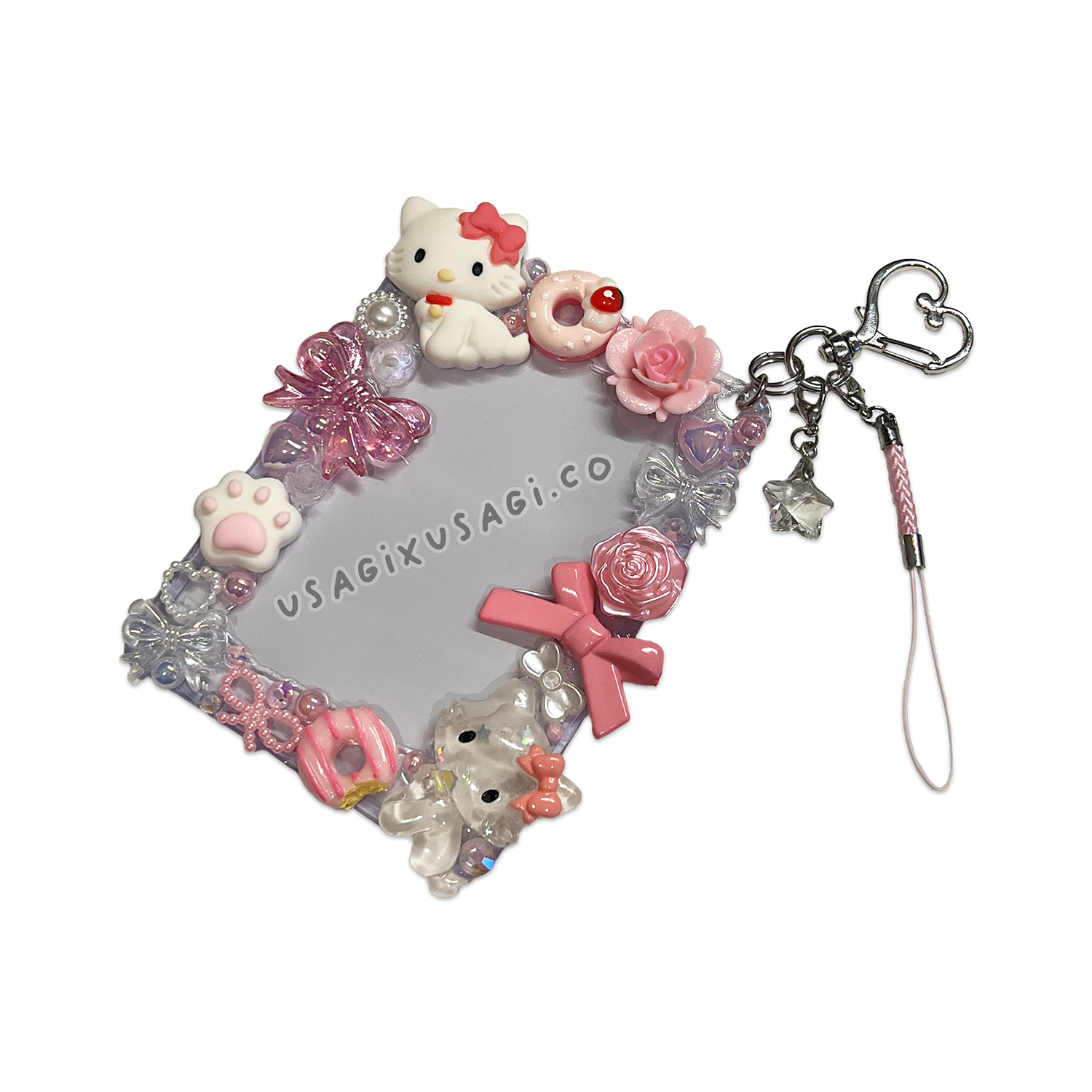 Sweet, soft, and purr-fectly dreamy—this Charmmy Kitty–inspired decoden toploader is handmade with love to give your photocards the cutest pastel frame. 🌸💖 Decorated with pink bows, pearly accents, and glossy white details, it captures the elegant yet playful charm of everyone’s favorite fancy kitty.