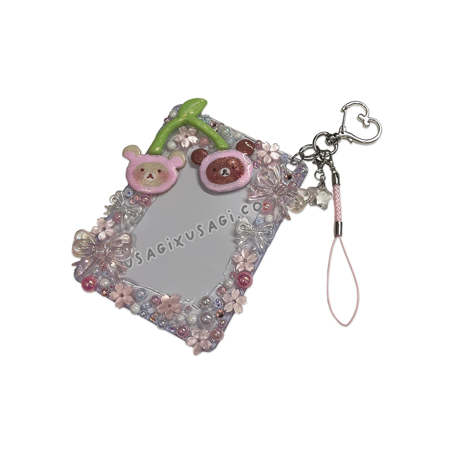 Show off and protect your photocards in full springtime sweetness! This pink-bow toploader is decorated with cute bear friends surrounded by juicy cherries and delicate cherry-blossom accents, wrapped in the softest pastel vibes.
