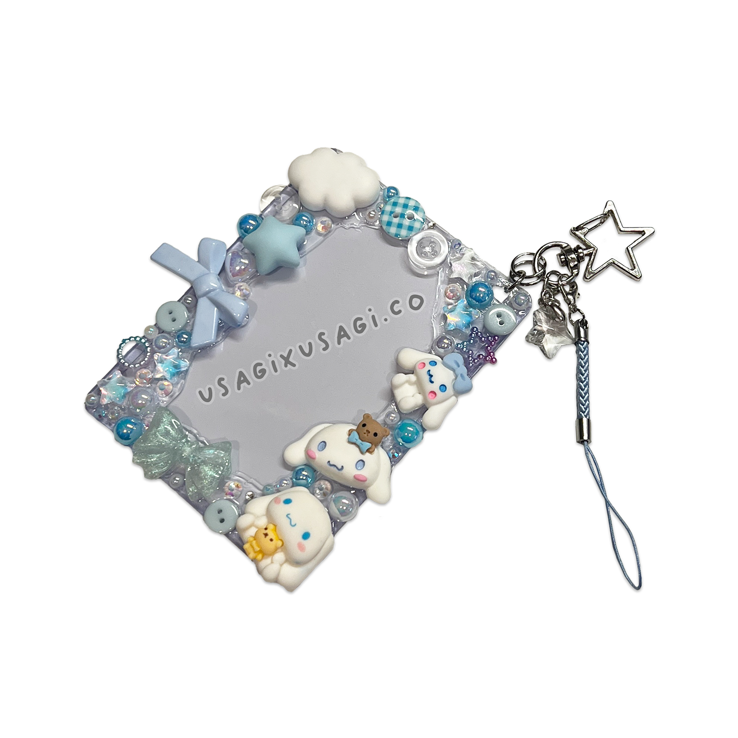 Sweet, fluffy, and oh-so-dreamy—this Cinnamoroll-inspired decoden toploader is the perfect pastel accessory for your photocard display! ☁️🐾 Decorated with blue and white buttons, pearly accents, and glossy pastel cabochons, this handmade piece captures the soft and whimsical charm of everyone’s favorite cloud puppy.
