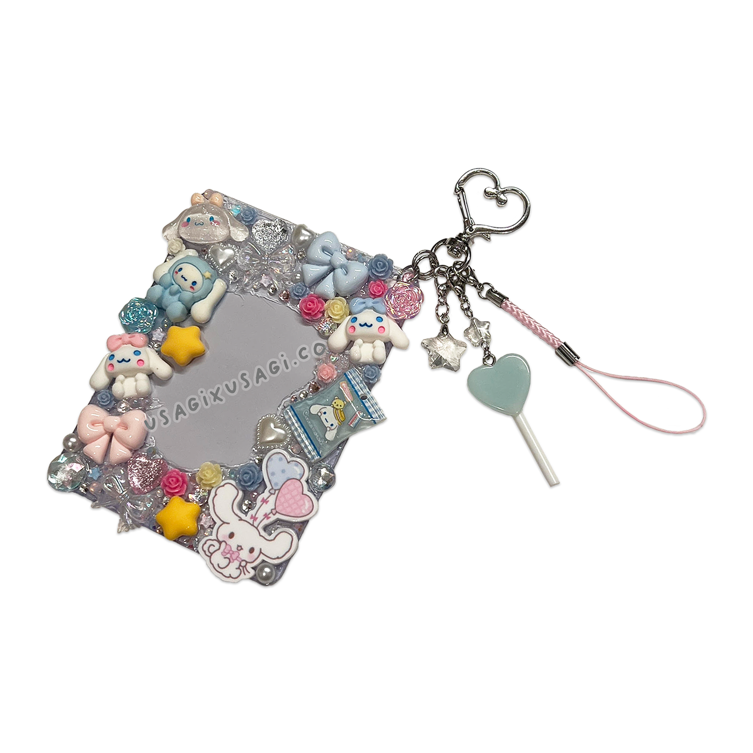 Sprinkle a little sweetness overload into your photocard game with our dreamy Cinnamoroll-inspired decoden toploader! 🐶🍓💫 Designed in soft pastel blue and pink, this handmade creation is bursting with kawaii charm—from glittery cabochons to heart gems and sugary cute accents! 💕🎀