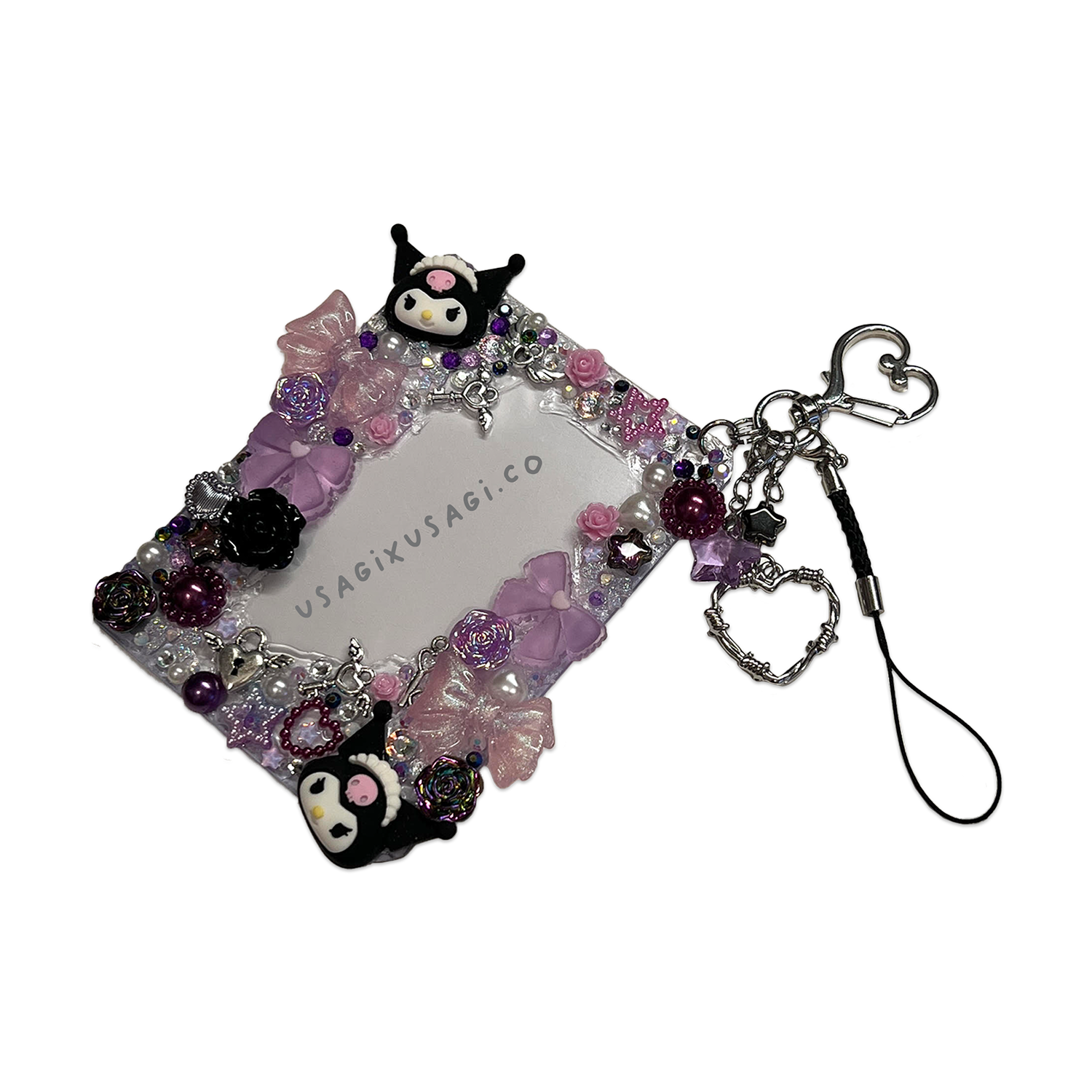 Calling all sweet rebels! 💫 This pastel goth-inspired decoden toploader blends soft lavender tones with bold black accents for a look that's equal parts cute and mischievous. 💅🖤🎀 Featuring sparkly bows, glitter hearts, and punky charm details, this piece is handmade to bring your photocard game to main character energy. 💌✨