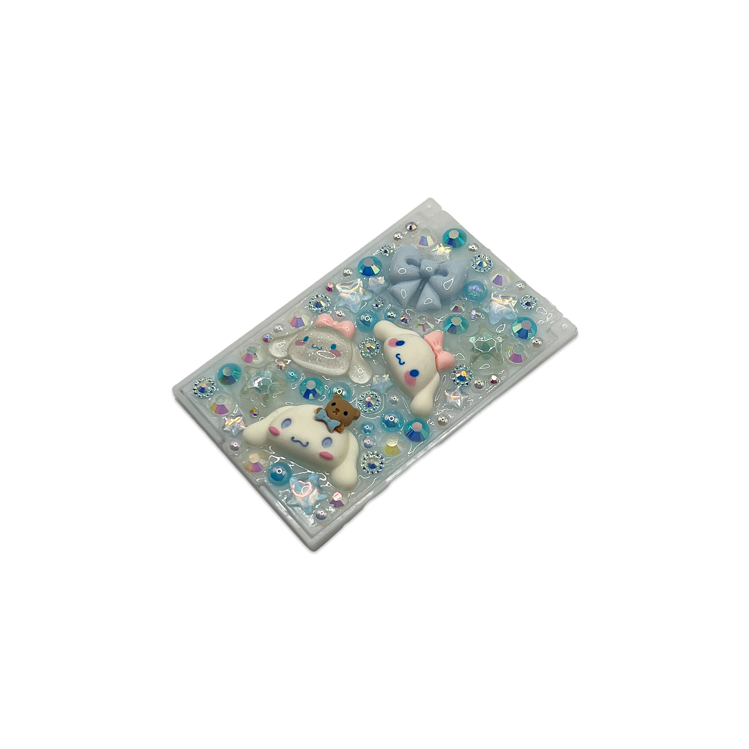 Sweet, soft, and sky-blue dreamy — this handmade flat decoden compact mirror is inspired by cloud-puppy vibes and gentle pastel charm. Decorated with a blue bow centerpiece, pearly accents, and glossy cabochons, this compact brings a refreshing, airy cuteness to your everyday carry.