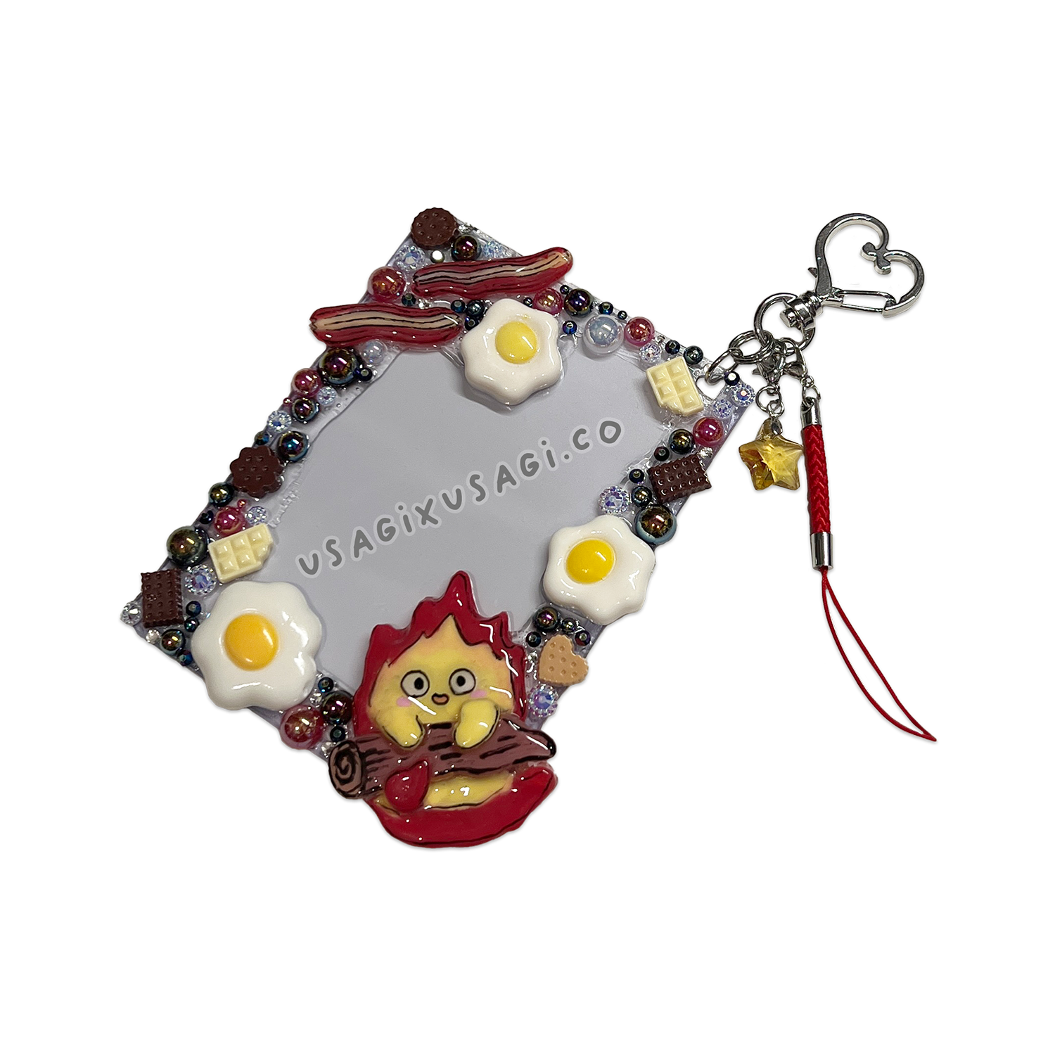 Bring a touch of cozy magic to your collection with this fire spirit–inspired decoden toploader! 🔥💛 Designed with a glowing flame charm surrounded by eggs, bacon, and breakfast cabochons, this piece captures that warm, playful kitchen spirit in the cutest way.