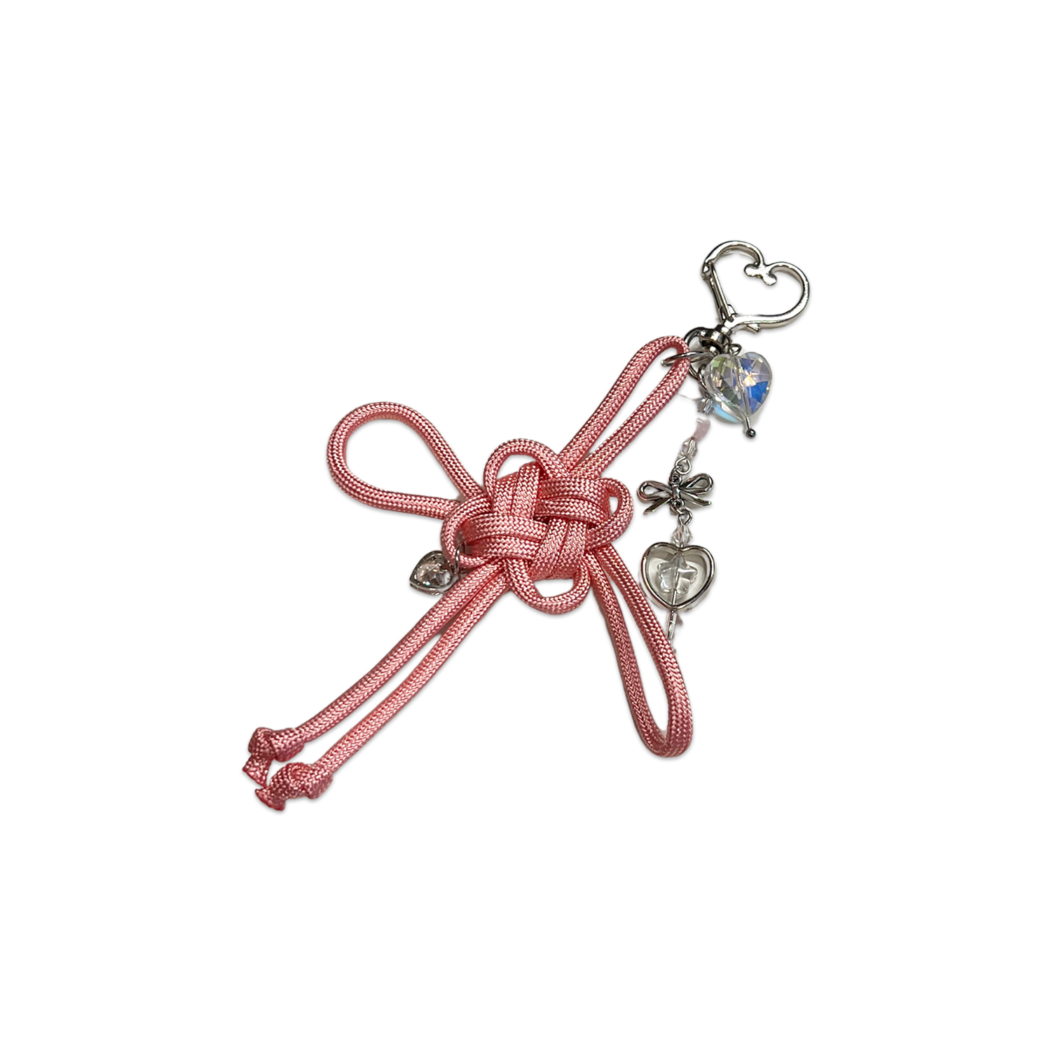 🎀💖 Lucky Knot Keychain – Pink with Crystal Charms ✨🔮