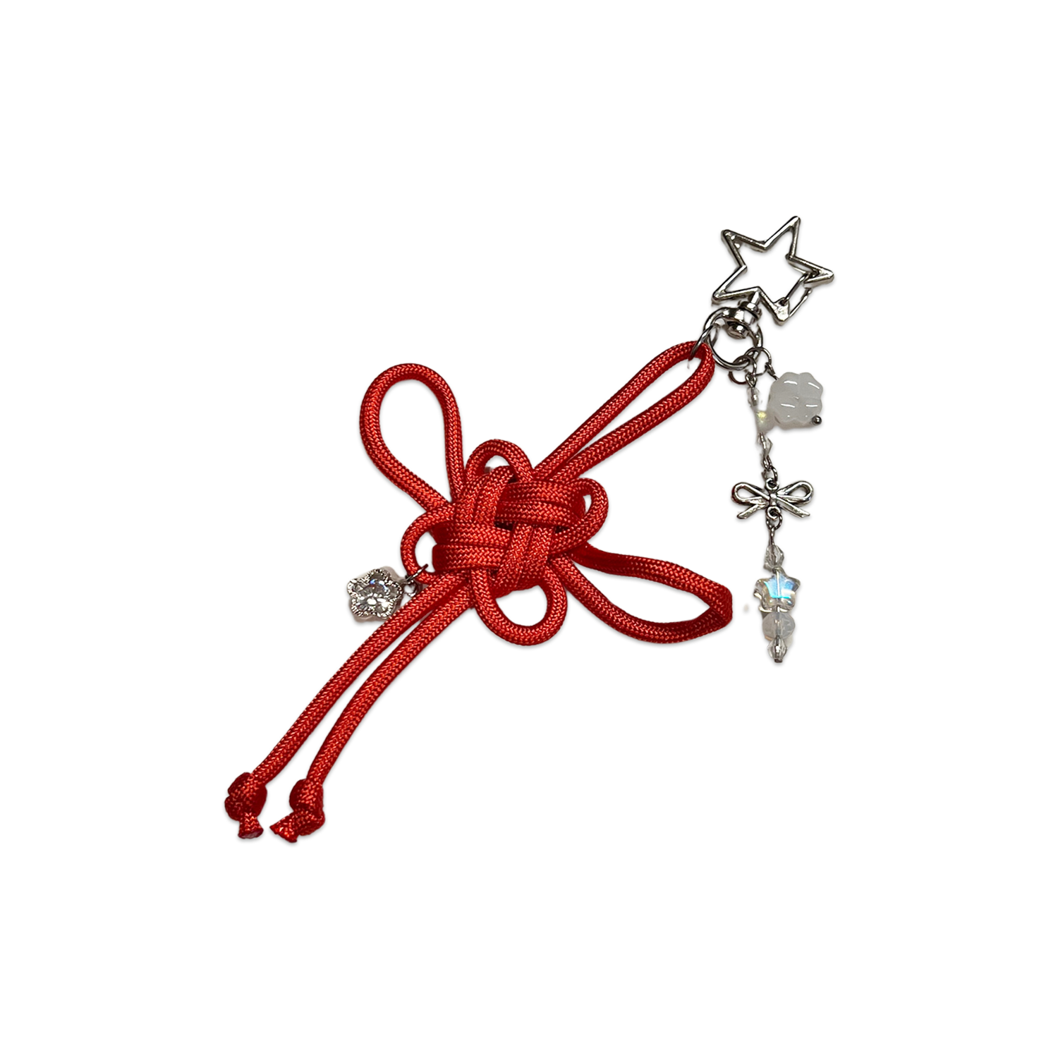 ❤️✨ Lucky Knot Keychain – Red with Crystal Charms 🔮💫
