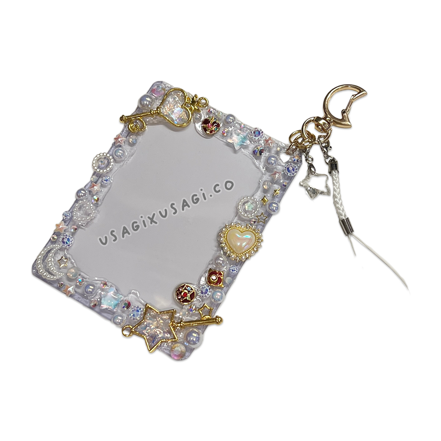 Unlock a little transformation magic for your photocard display~ 💫 This handmade decoden toploader features a golden magical key charm, sparkly celestial cabochons, and glossy pastel accents inspired by iconic magical guardian aesthetics. Perfect for collectors who adore moonlit vibes and starry cuteness! 🌌💕