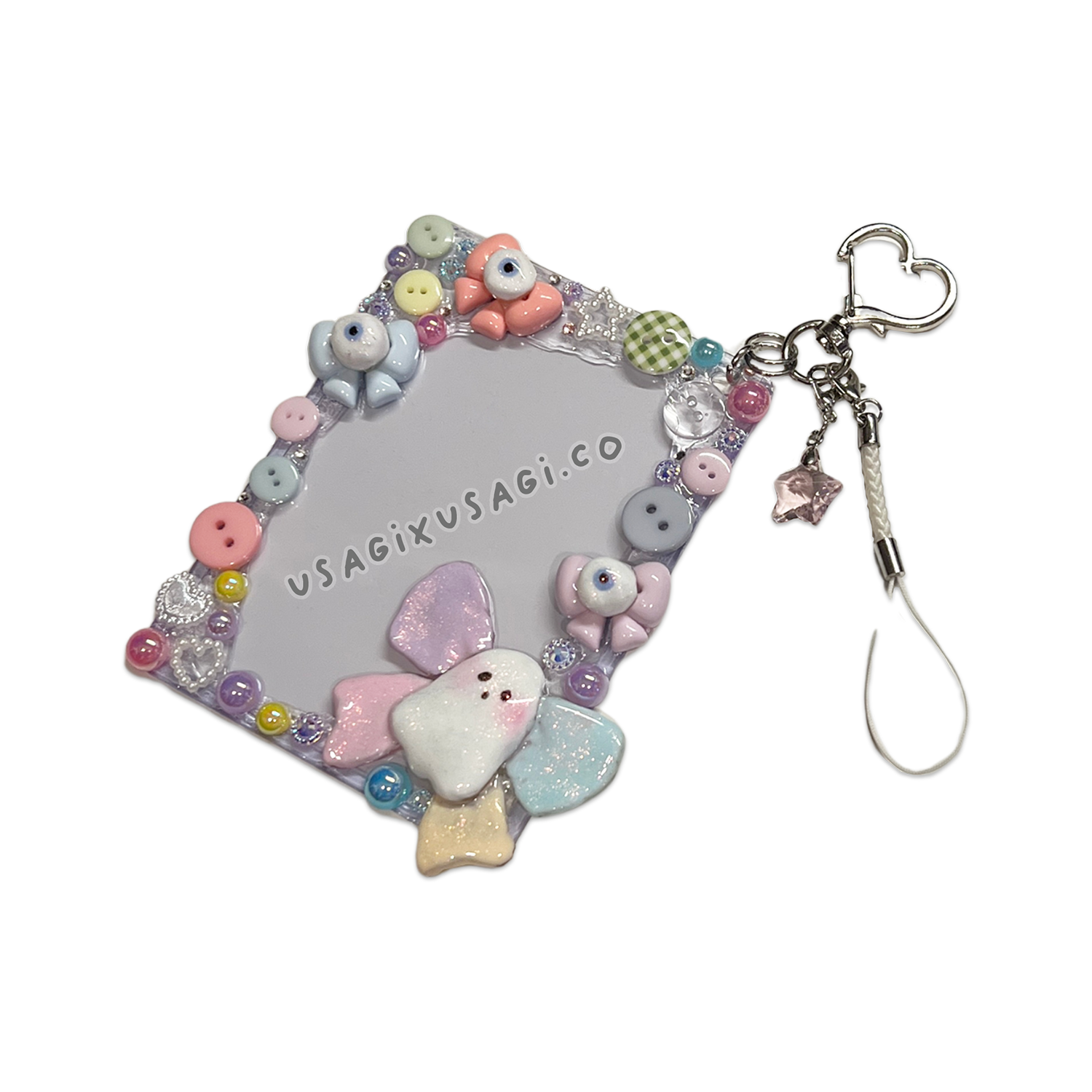 - 🎀 Decorated with pastel ghost + cute bow + cabochon accents
