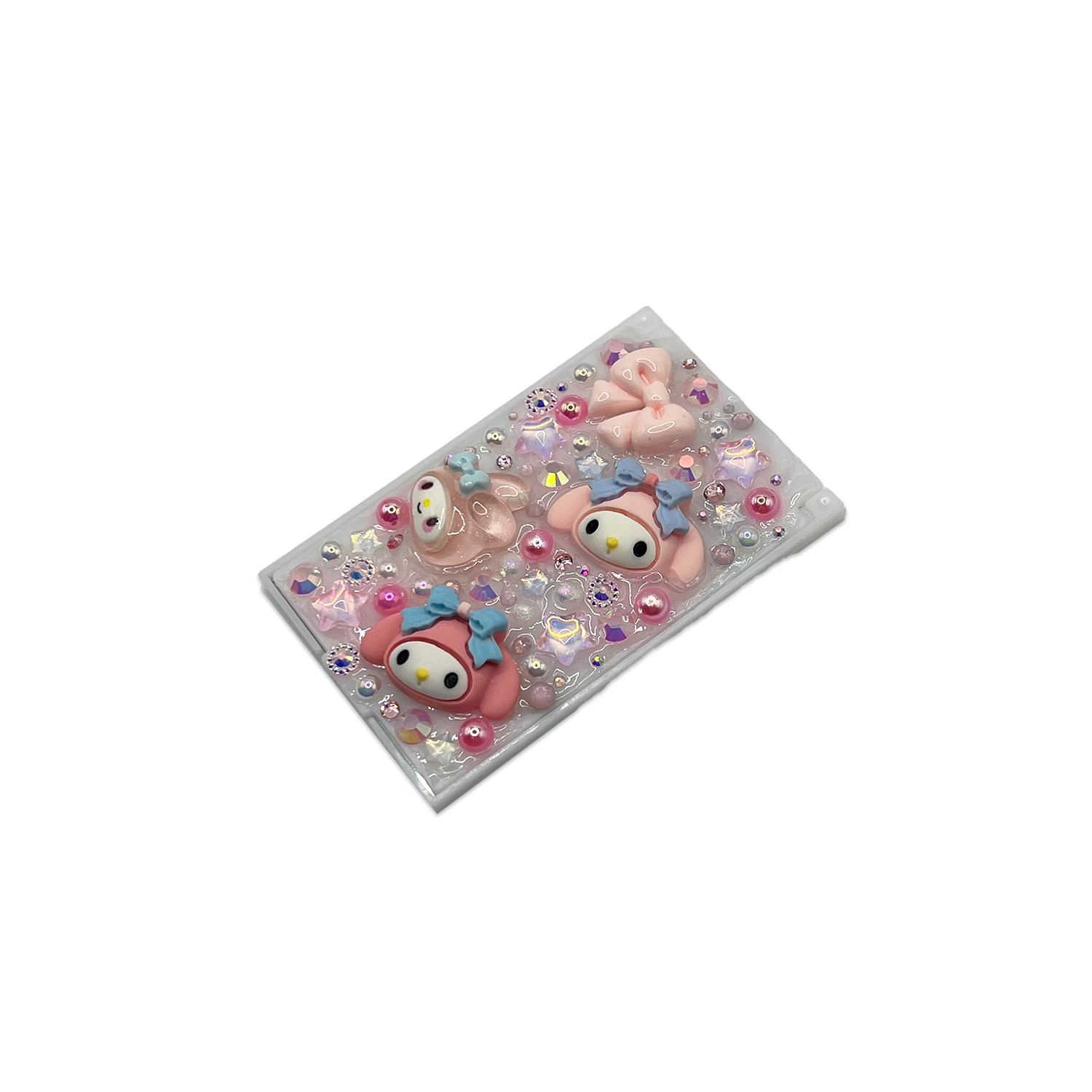 Cute with a mischievous twist — this handmade flat decoden compact mirror features a black and purple bow theme inspired by playful gothic-kawaii vibes. Decorated with glossy cabochons, pearly accents, and a bold color palette, this compact adds the perfect mix of sweet + spicy energy to your everyday essentials.