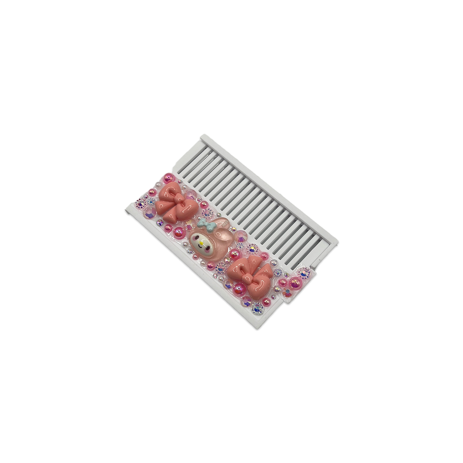 Soft, sweet, and perfectly pink — this handmade decoden compact mirror comb is inspired by gentle bunny-girl aesthetics and dreamy pastel charm. Decorated with pink bows, glossy cabochons, and pearly accents, this adorable set brings a calming, cute glow to your everyday routine.