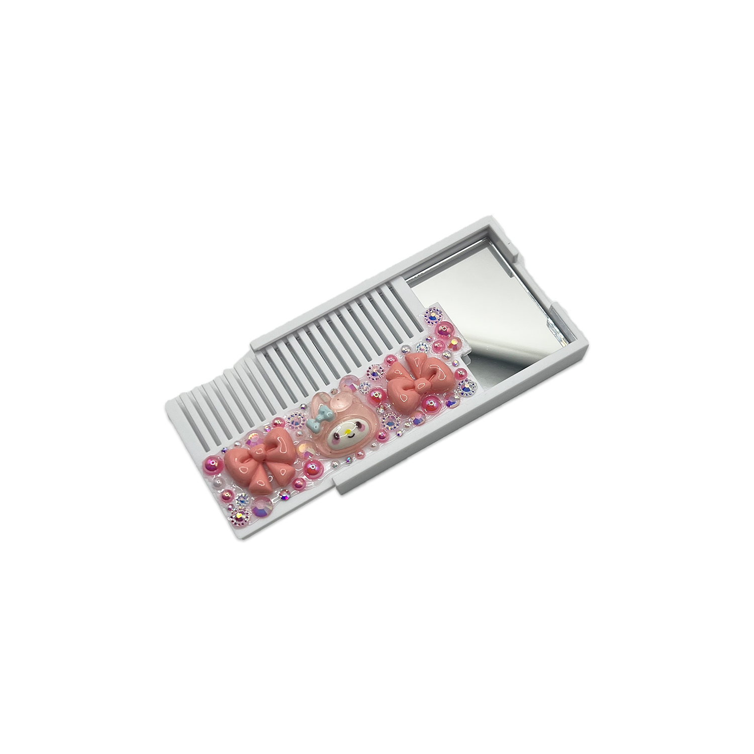 The slim, lightweight design includes a flat mirror plus matching comb, making it perfect for on-the-go touchups, convention days, makeup bags, and travel. Each piece is hand-decorated with love, making every set a unique pastel gem. 🌸💫