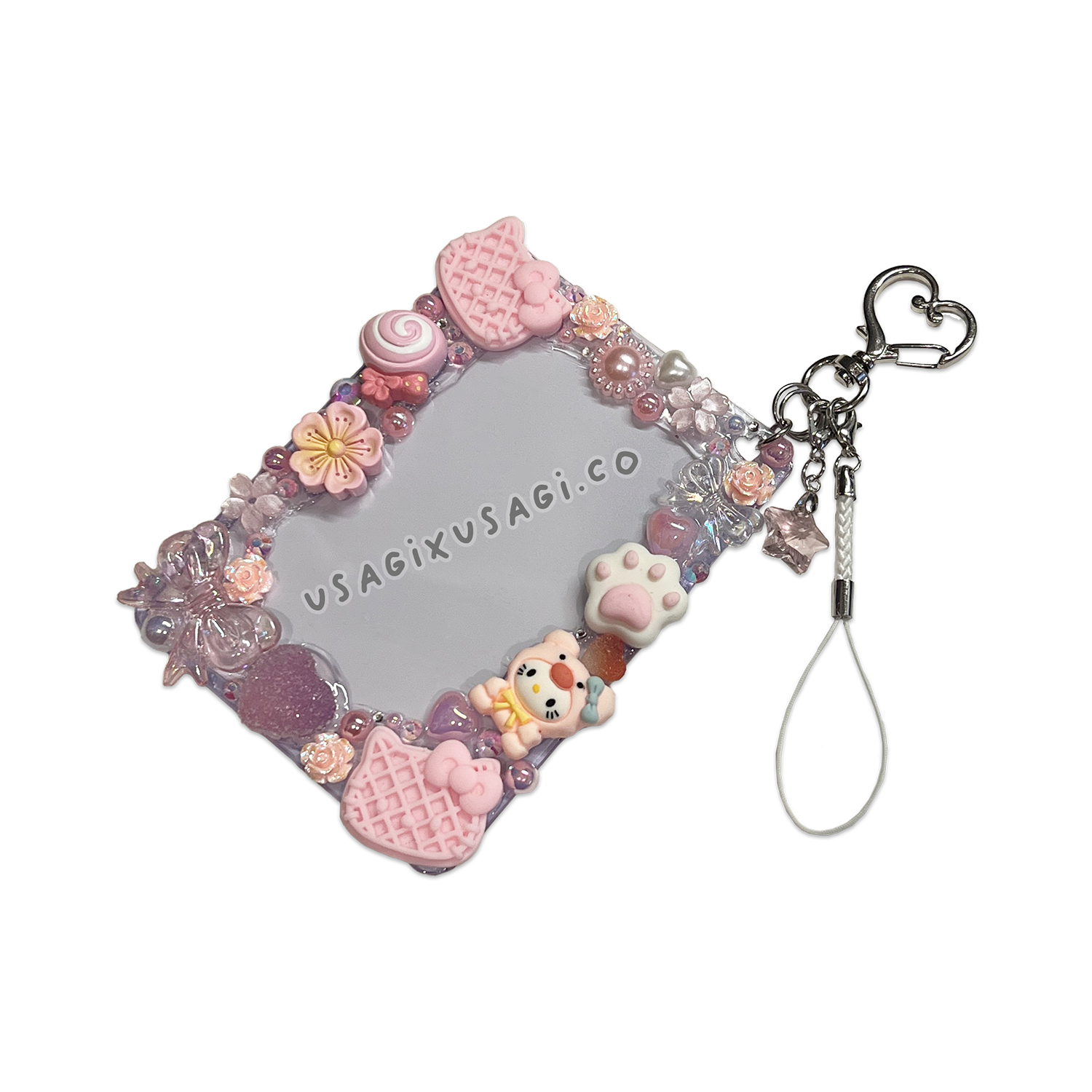 - 🌸 Decorated with pink waffle charms, sakura blossoms & pearly accents