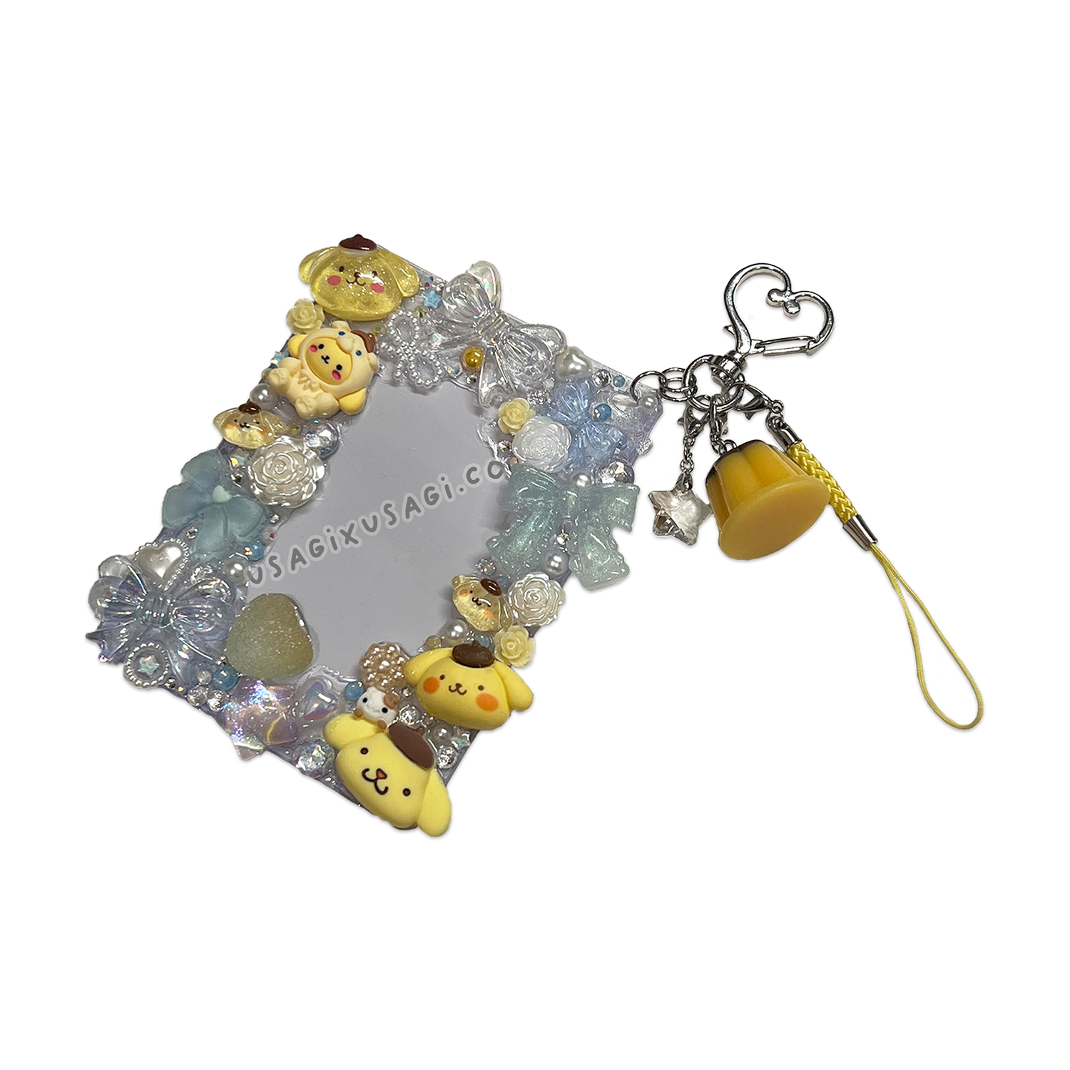 Get ready to melt into the sweetness with this pudding pup-inspired decoden toploader! 🐾🍯 Decorated in soft pastel yellows and baby blues, this piece is handmade with sparkly blue bows, glitter hearts, and a sleepy golden puppy charm that gives off the ultimate cozy café vibes. ☁️🎀✨