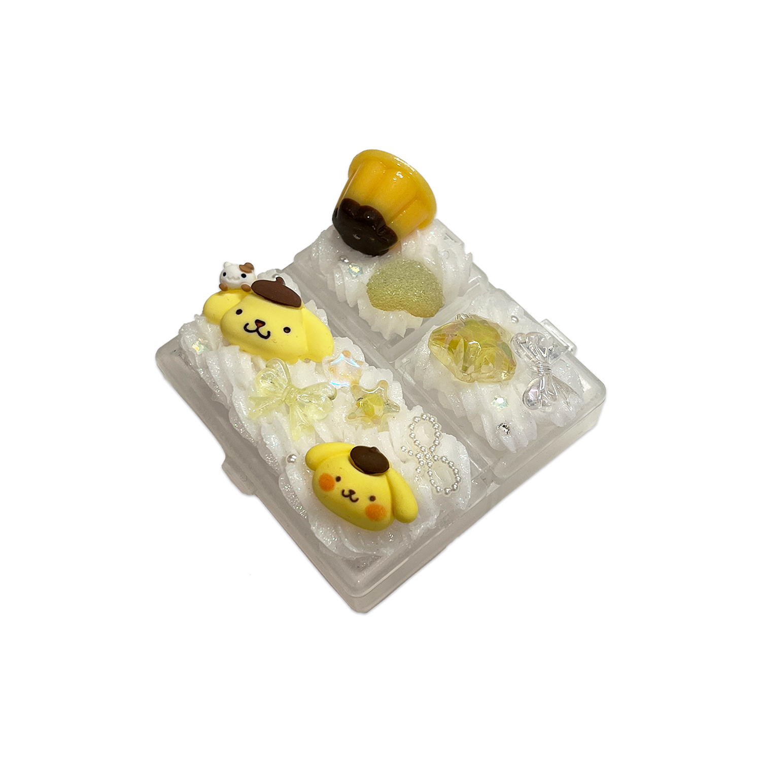 Store your small treasures with the help of the cutest pudding pup around! 🐾✨ This 3-pocket trinket box is inspired by everyone’s favorite golden retriever and features a warm pastel yellow and brown color palette, whipped cream textures, heart sprinkles, and cozy dessert-themed accents. 🎀🍪