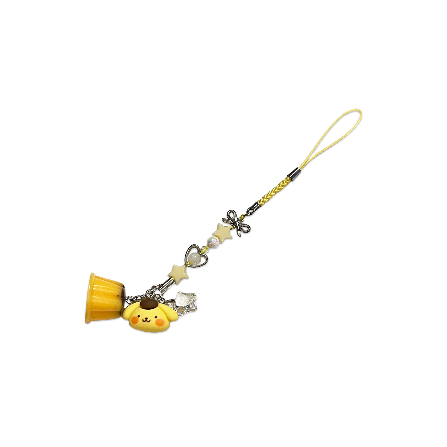 Sweet, squishy, and sunshine-colored ☀️ This pudding-inspired phone charm features a soft yellow braided strap 💛, a large pudding charm with adorable pup-like energy 🍮, and a clear star charm for the perfect touch of sparkle 🌟