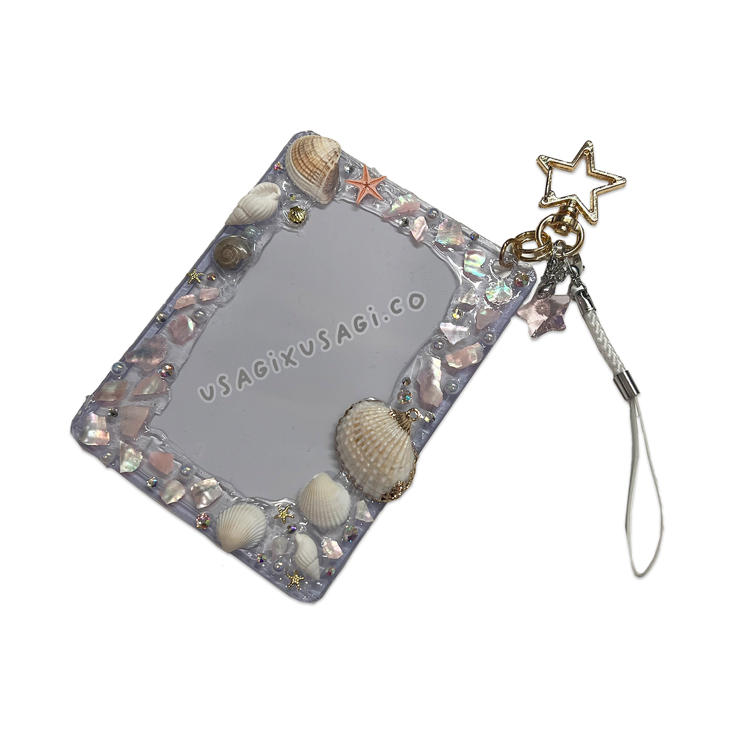 Perfect for displaying photocards, polaroids, or mini prints, this frame gives your collection a touch of mermaid-core elegance and coastal kawaii charm. Every toploader is hand-decorated, making each one one-of-a-kind, just like shells in the sand. ✨