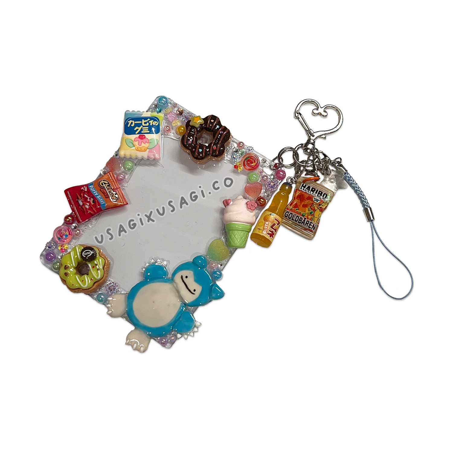 Cuddle up with cozy vibes (and lots of snacks!) with this Snorlax-inspired decoden toploader! 🐻💤 Decorated with mini food charms like donuts, ramen, and treats alongside glossy pastel accents, this handmade design captures the laid-back charm of everyone’s favorite sleepy foodie.