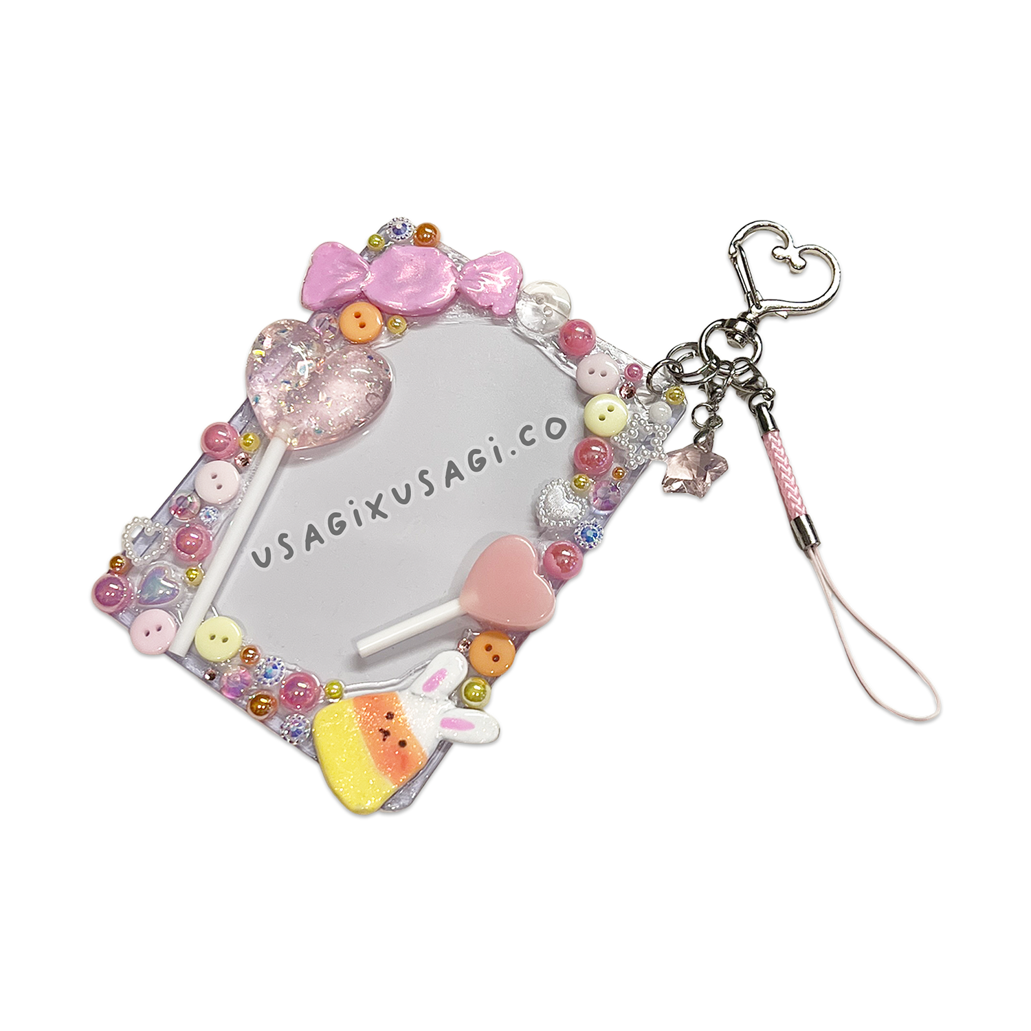 - 🍬 Decorated with pink bunny candy corn charm + pastel cabochons