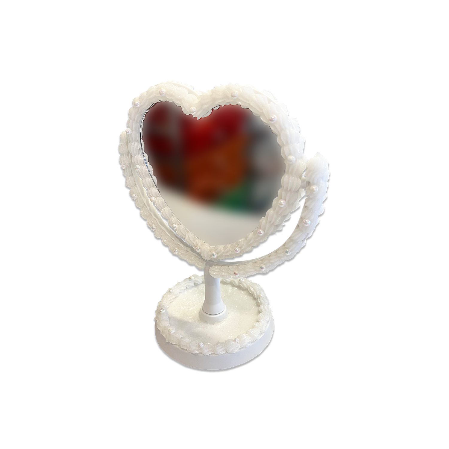 - 🍰 Double-sided heart-shaped mirror — ideal for detailed face checks and makeup application
