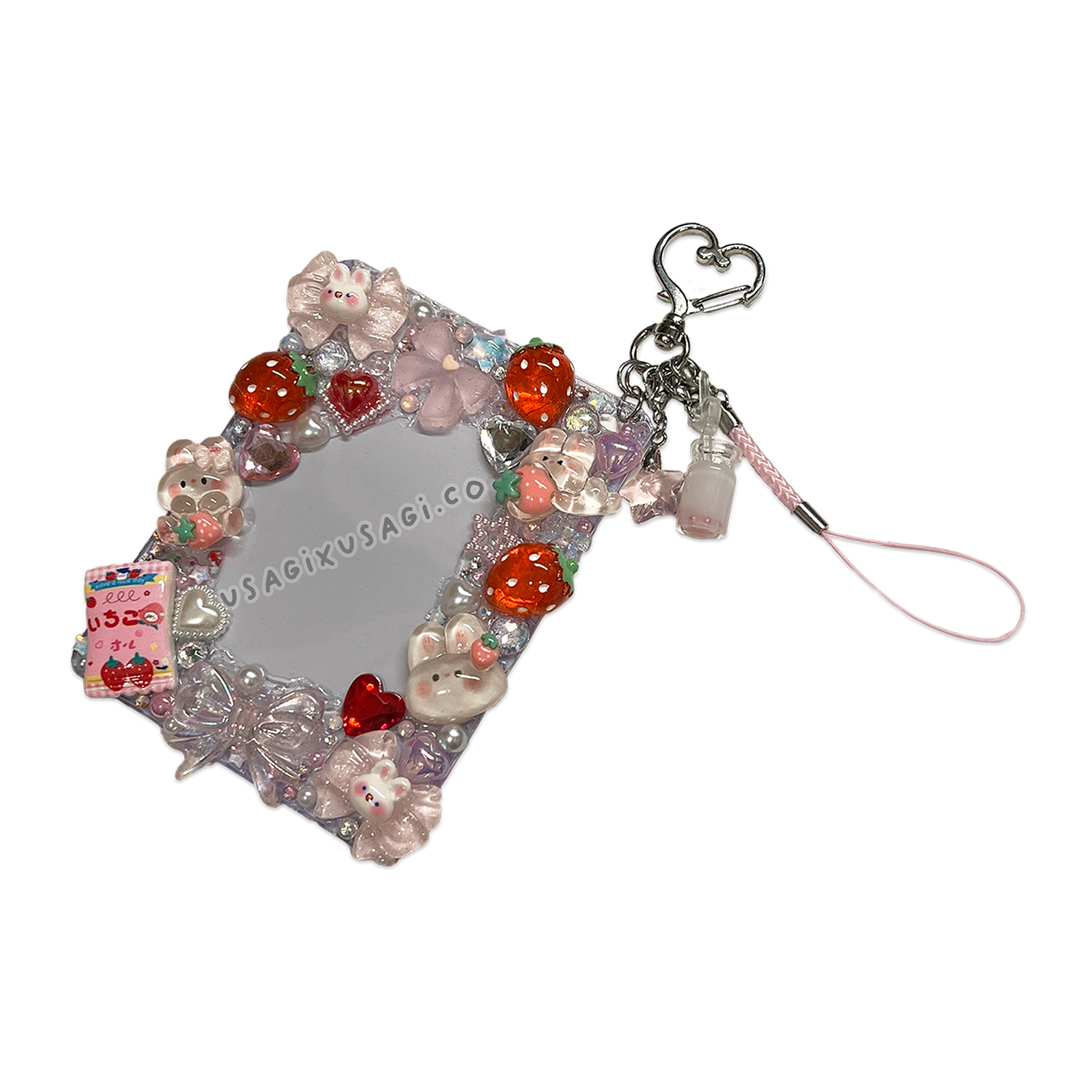 Hop into a world of sweetness with this strawberry and bunny-themed decoden toploader! 🍓✨ Handmade with love and layered in deco, this piece features adorable bunny charms, glossy strawberries, heart cabochons, and sparkly pastel accents that scream cottagecore meets kawaii. 🍰🌸💕